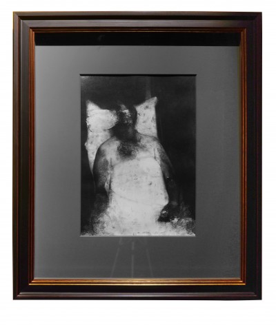Found frame and paper, graphite, elmer's glue, antique frame